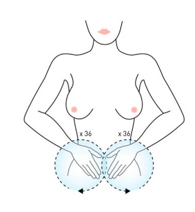 Masajeamos y frotamos ligeramente los pechos 48 veces.